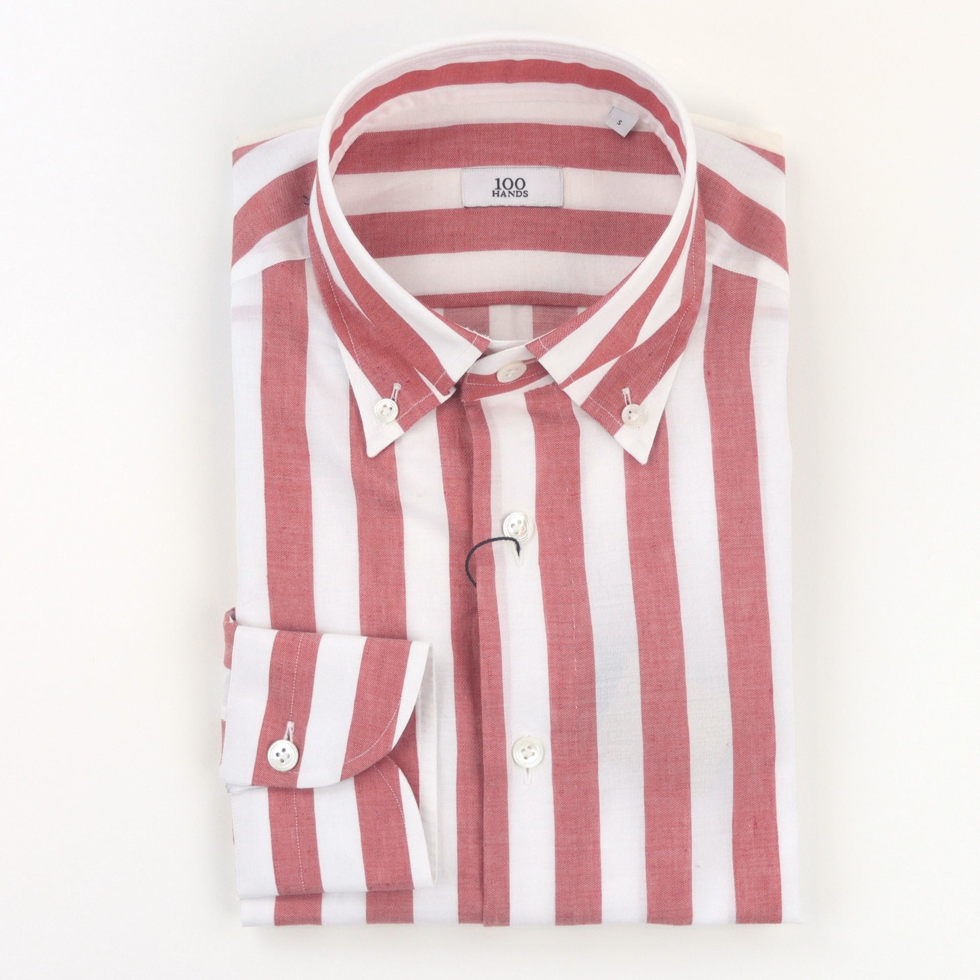 100 Hands Linen Wide Stripe Shirt - Red / White