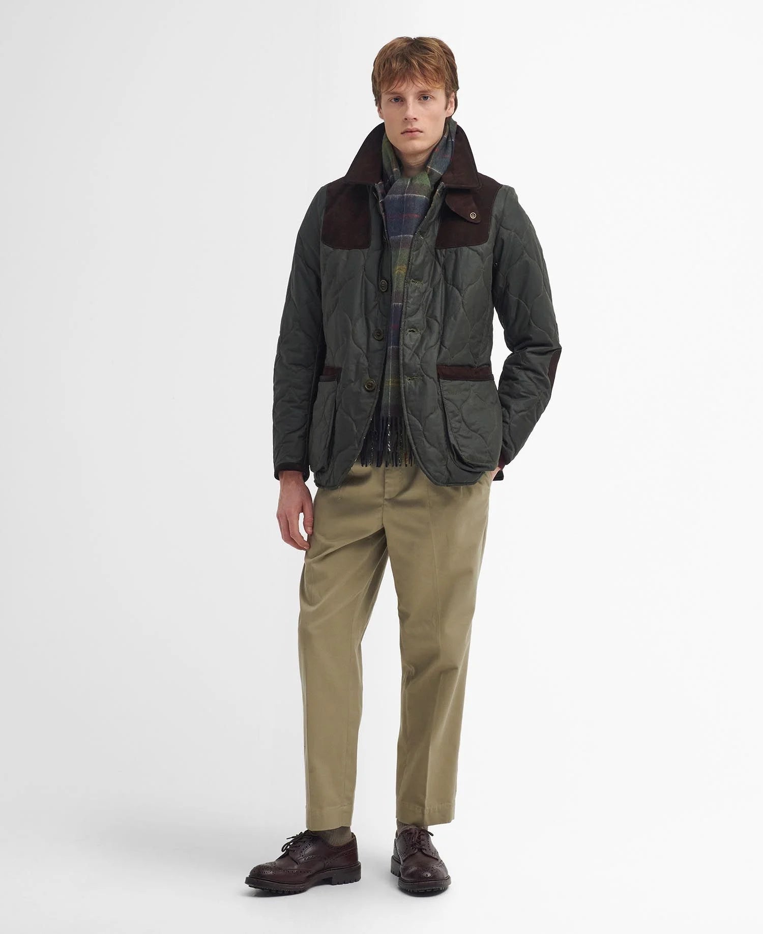 Barbour's partnership with TO KI TO is something truly special. 15-years-ago, Barbour embarked on its first-ever collaboration with TO KI TO bring together two keen eyes for design and functionality. This collaboration offers complex garments that have been carefully considered at every step to bring together authenticity and expertise with functionality at its core.Inspired by Barbour's Liddesdale quilted jacket, the Barbour x TO KI TO Sporting Quilted Waxed Jacket boasts a modern take on traditional box quilting. Offering a blend of Barbour's signature waxed cotton and onion quilting, this take features Corozo buttons complemented by suede trims and collar for an authentic finish. Consciously designed with outdoor pursuits and protection against the elements in mind, this style has been lined with thermal wadding to help with heat retention and U-shaped lower pockets to provide ample room for all of your on-the-go needs without sagging or misshaping the jacket's silhouette.