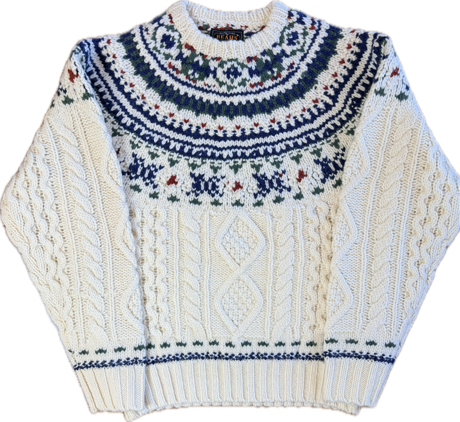 Beams Plus Fair Isle Shetland Crewneck Sweater – Natural Wool