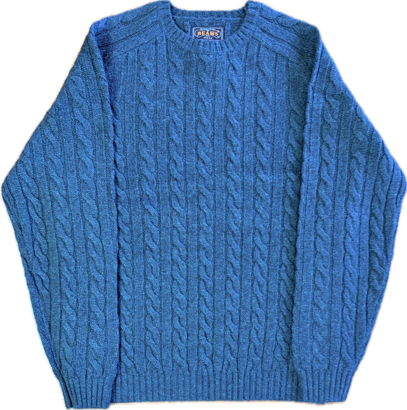 Classic British heritage meets Japanese precision in the Beams Plus Cable Knit Crewneck. Made from 100% wool, this sweater showcases a traditional cable pattern throughout, offering both texture and timeless appeal. The soft heathered green hue adds depth and versatility—an ideal balance between rugged fisherman style and Ivy League polish.