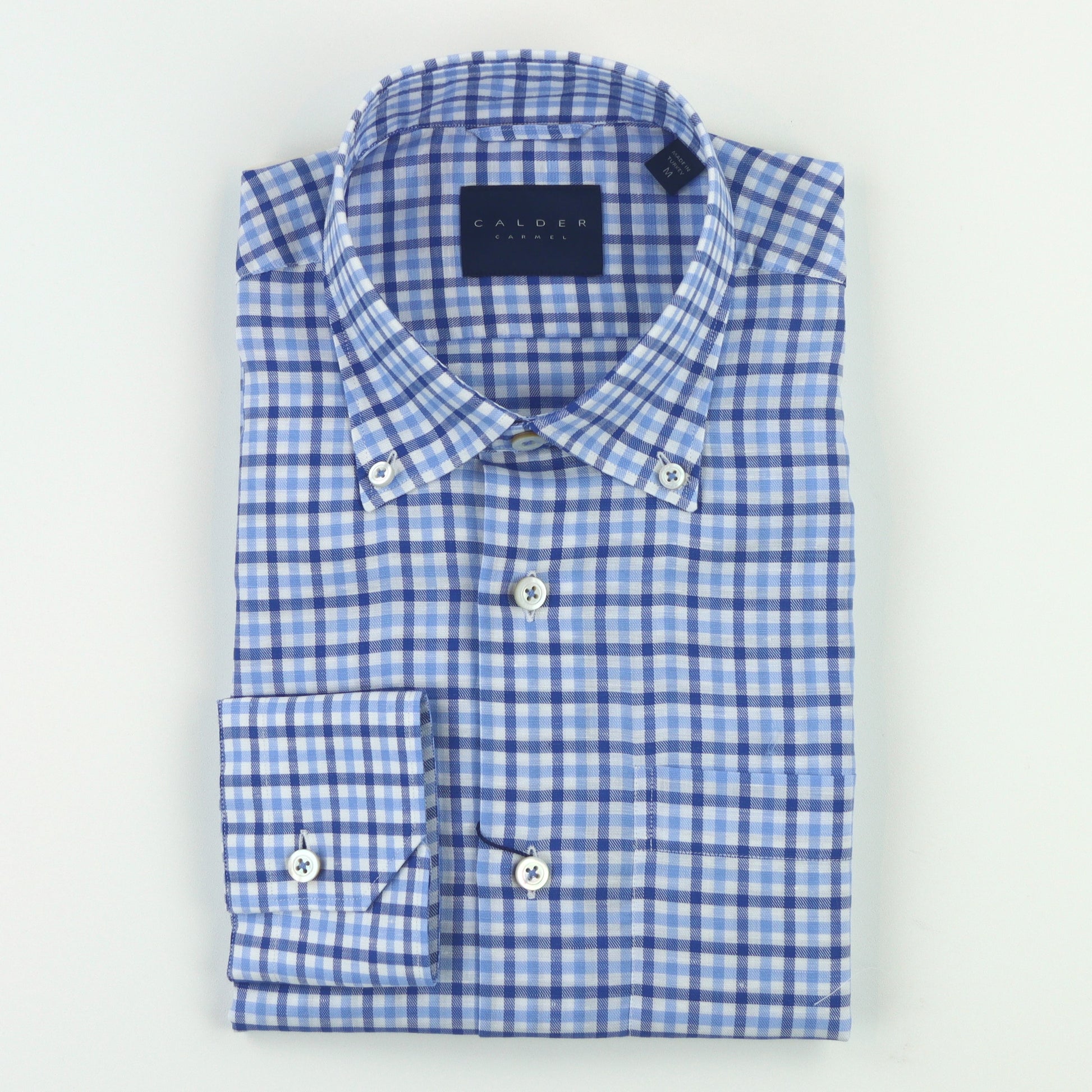 Calder Carmel Cotton/Linen Twill Check Shirt - Blue