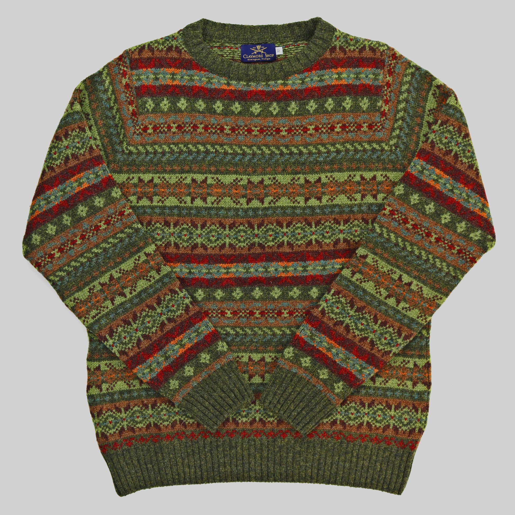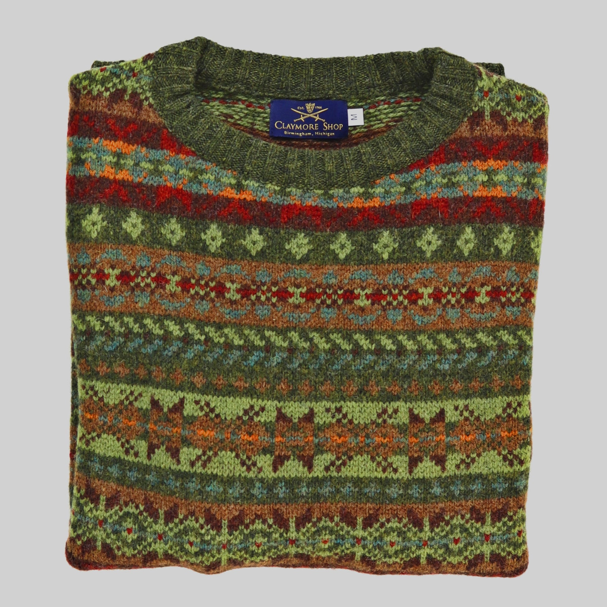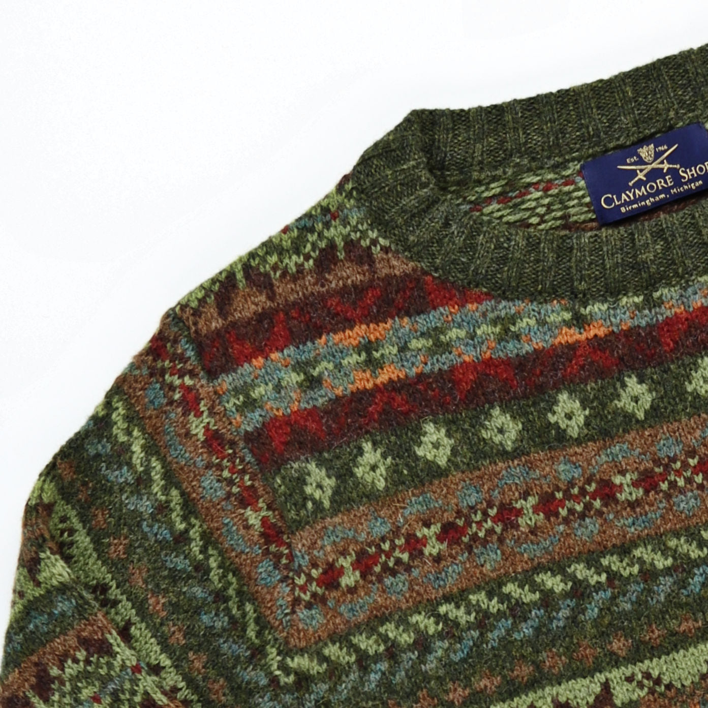 Claymore Shop Shetland Fair Isle Crewneck Sweater Pine
