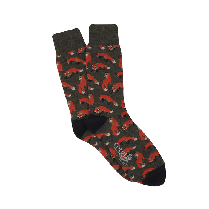 Corgi Fox Icon Merino Wool Socks - Moss/Navy