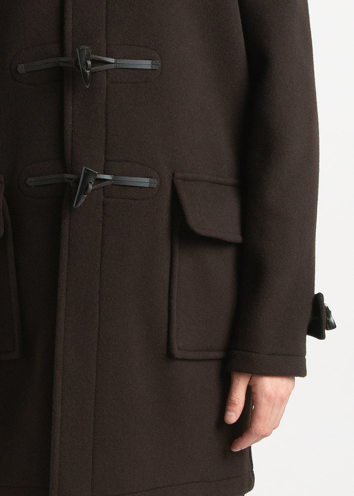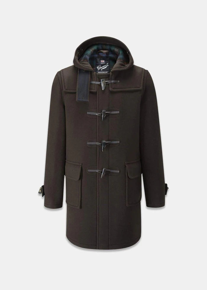 On sunny afternoons, leave the hood down to flash the tartan check interior of this coat's double-faced cloth, made from a rich blend of Italian wool. Buffalo horn toggles add a sophisticated finish to the design, along with soft leather loop fastenings. Cold weather poses no problem in this Morris duffle, thanks to the added warmth of a fixed shoulder cape.