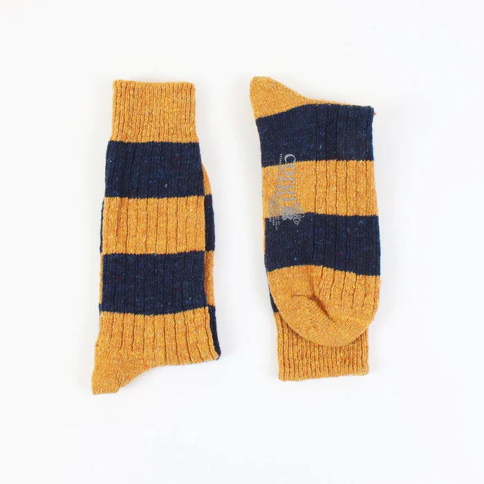 Corgi Rugby Stripe Donegal Wool Socks - Gold/Navy