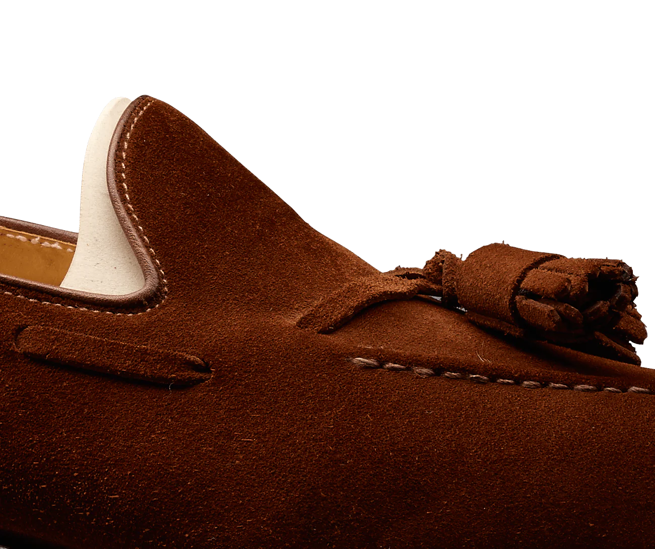Cavendish, a classic that has firmly established itself as one of the finest tassel loafers available today. A versatile loafer style, made from the finest polo brown calf suede with single leather soles.