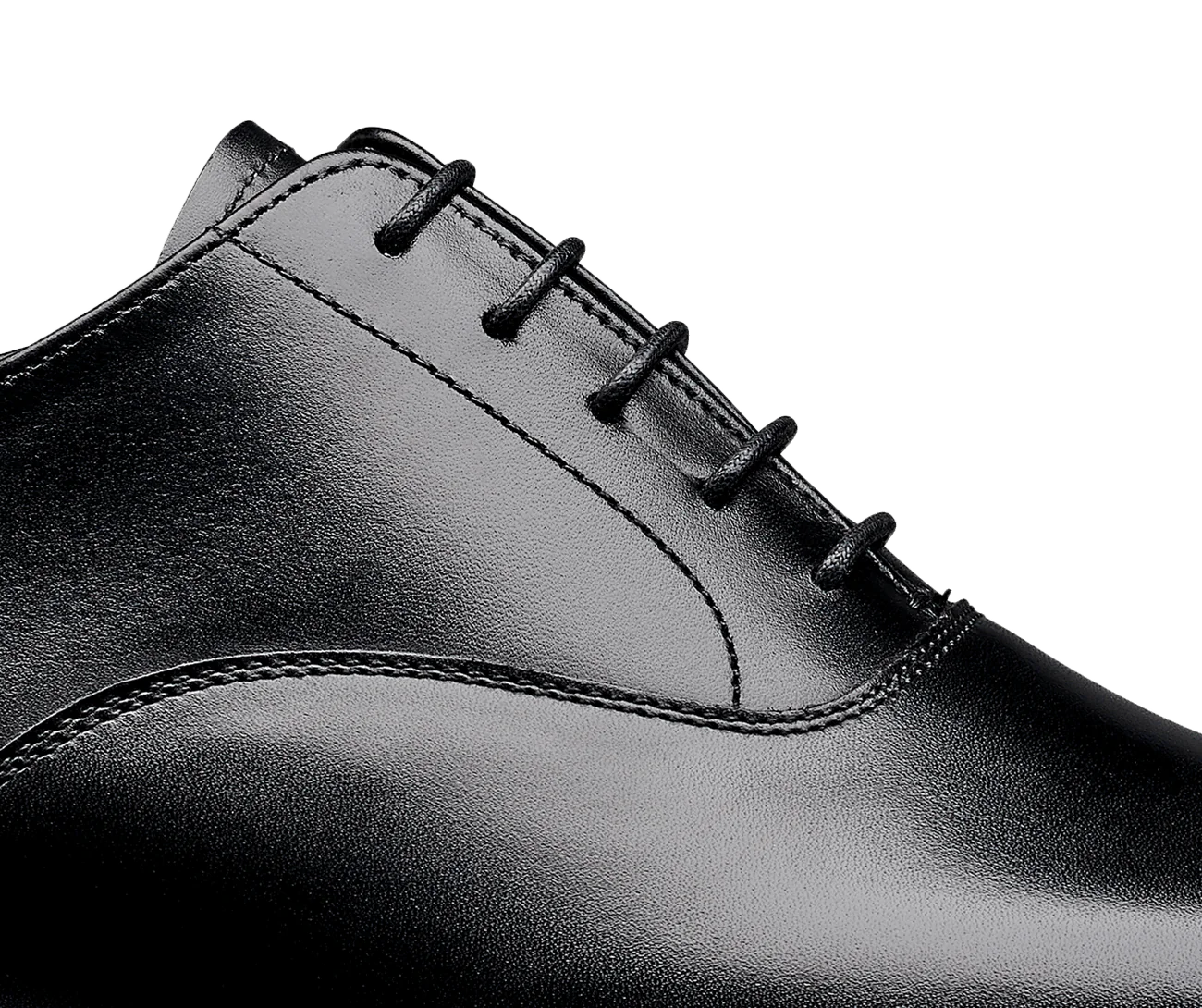 Connaught 2, an update on the original classic straight cap oxford now on last 379. Made from the finest black calf leather with our 'City' rubber sole