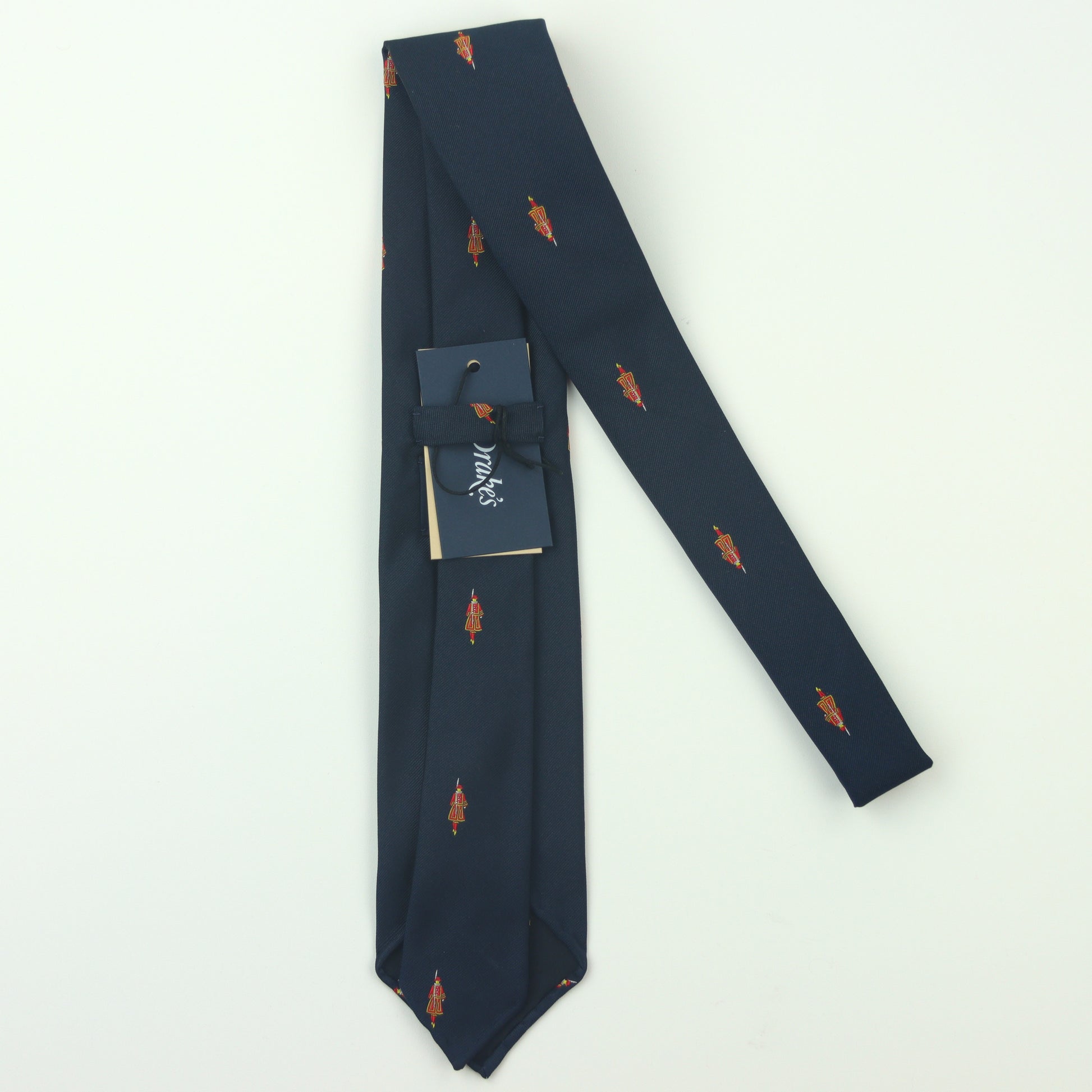 Drake's Beefeater Silk Hand Rolled Necktie - Navy