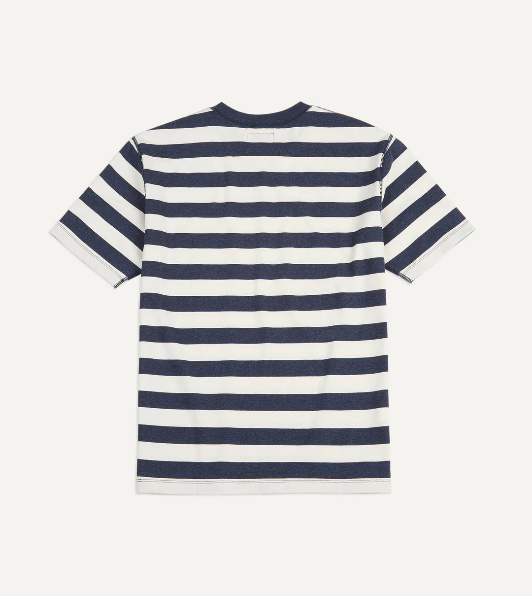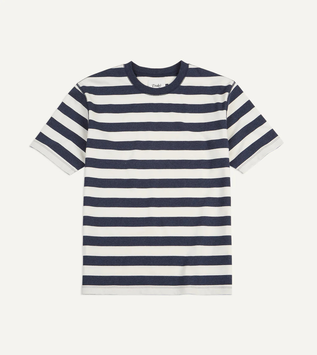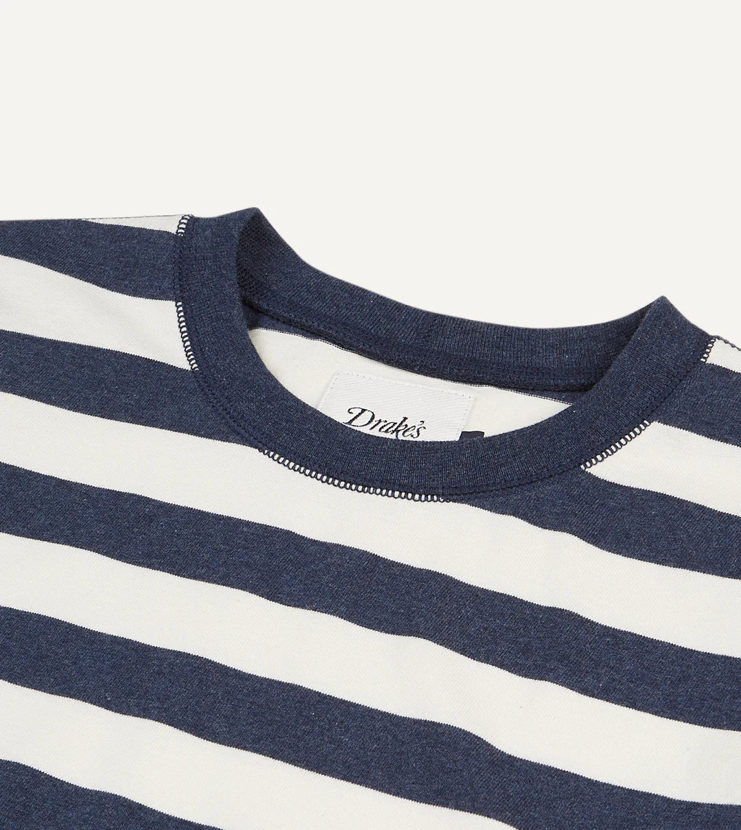Drake's Block Stripe Cotton Crew Neck Hiking T-Shirt - Navy/White