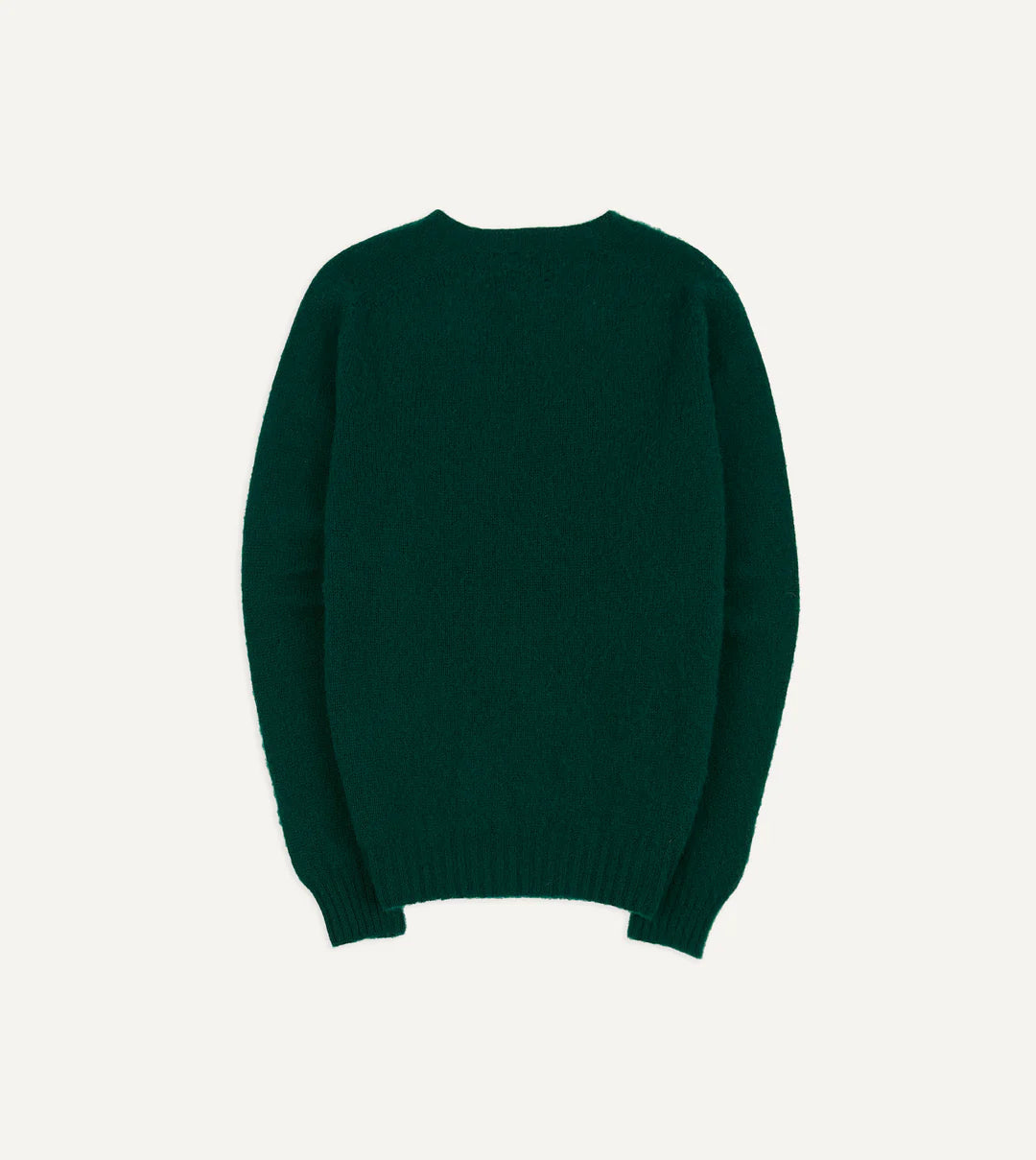 Drake's Brushed Shetland Crew Neck Jumper - Forest Green