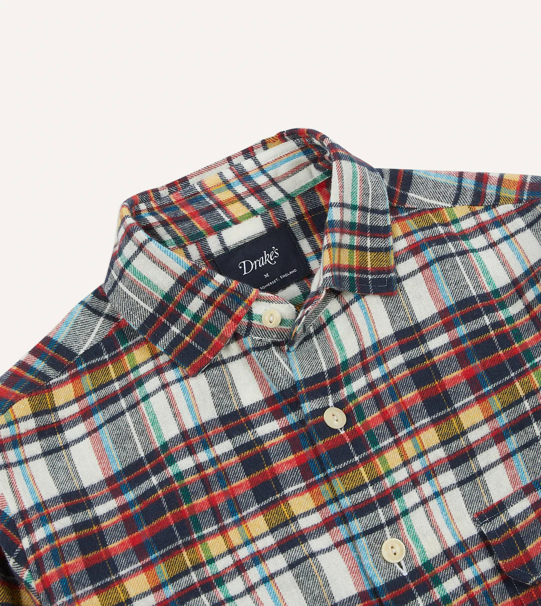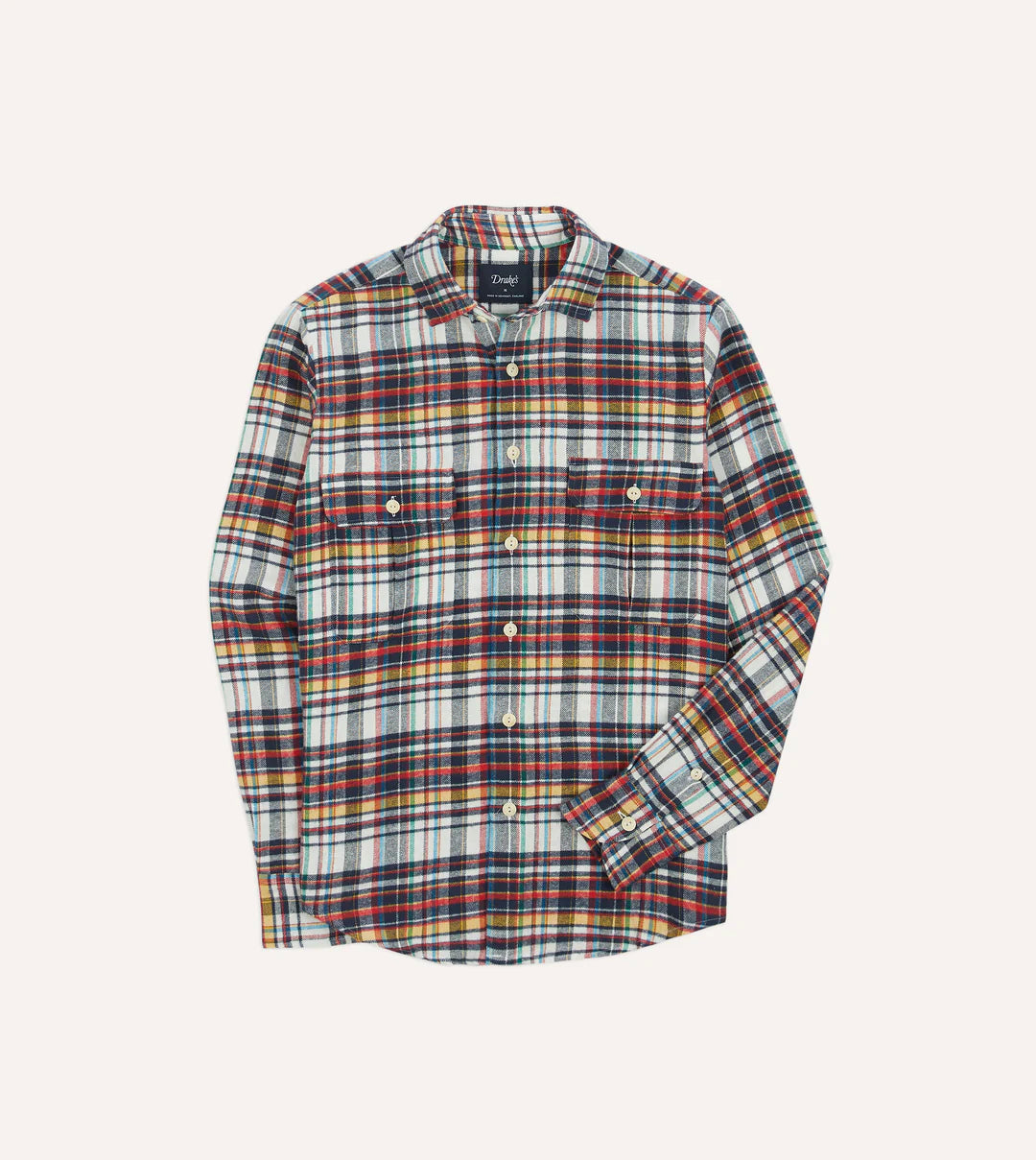 Drake's Check Brushed Cotton Two-Pocket Work Shirt - Multi