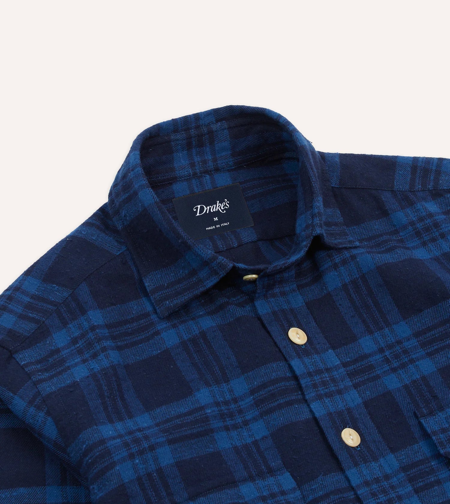 Cut from a Japanese brushed cotton with a slubbed texture, it features a curved hem, single-button cuffs, and two flap pockets, perfect for keeping essentials close without weighing down your trousers. Every detail, from the fisheye corozo buttons to the single-needle construction, reflects Drake’s hallmark attention to quality.