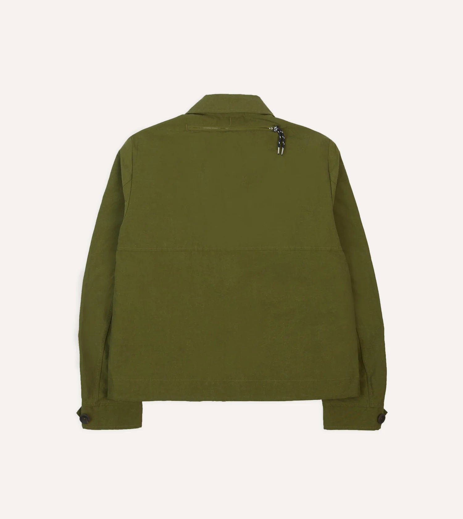 Cut from a Japanese blend of cotton and nylon, this jacket has a short, slightly boxy shape which lends it a nostalgic silhouette. With an adjustable waist, concealed hood and ample pocket space, it makes subtle nods to early 20th century flight jackets, and in turn, the track jackets seen in the early days of the Monaco Grand Prix.