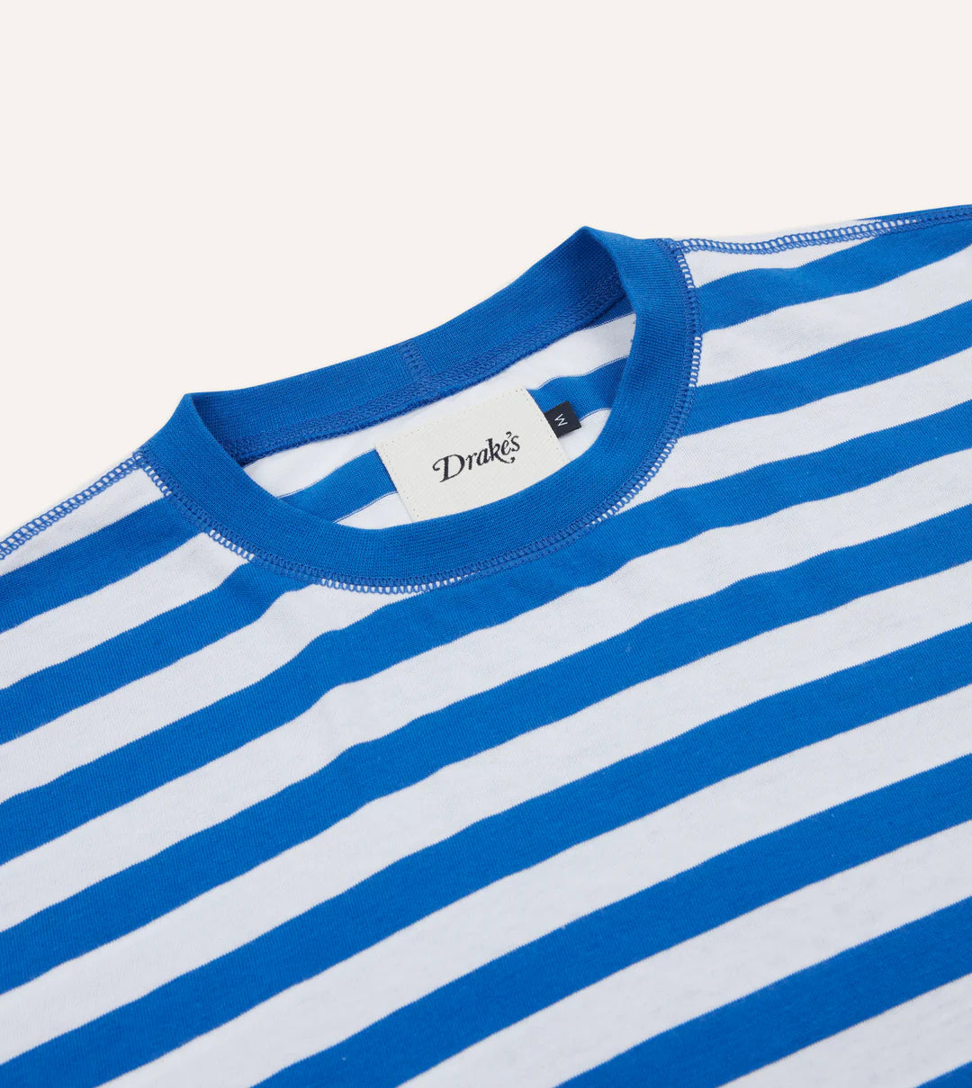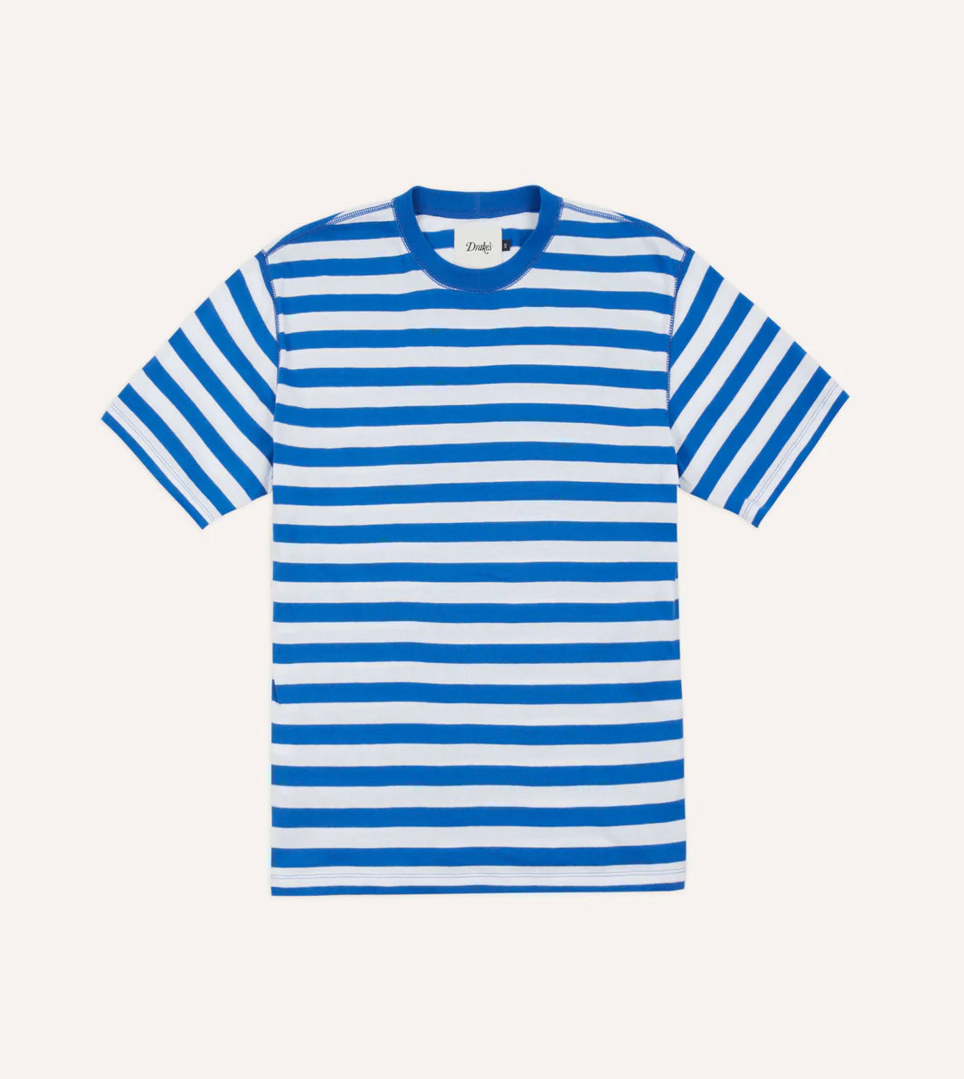 Drake's Lightweight Cotton Crew Neck Hiking T-Shirt - Blue and White