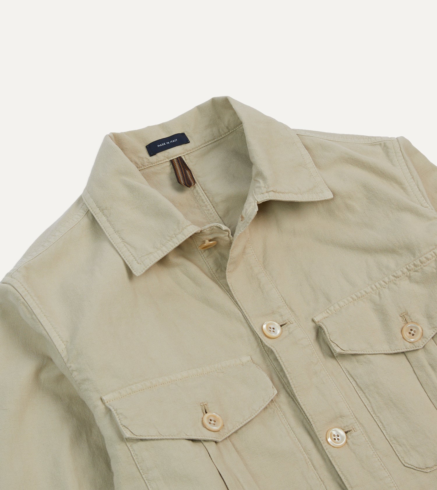 Taking its cues from military tunic jackets of the early 20th century, the Games Tunic is cut from a double-faced Italian blend of cotton and linen that's been garment washed for a more lived-in feel. With a shirt collar, darted waist and inverted pleat pockets, it splits the difference between a field coat and an overshirt.