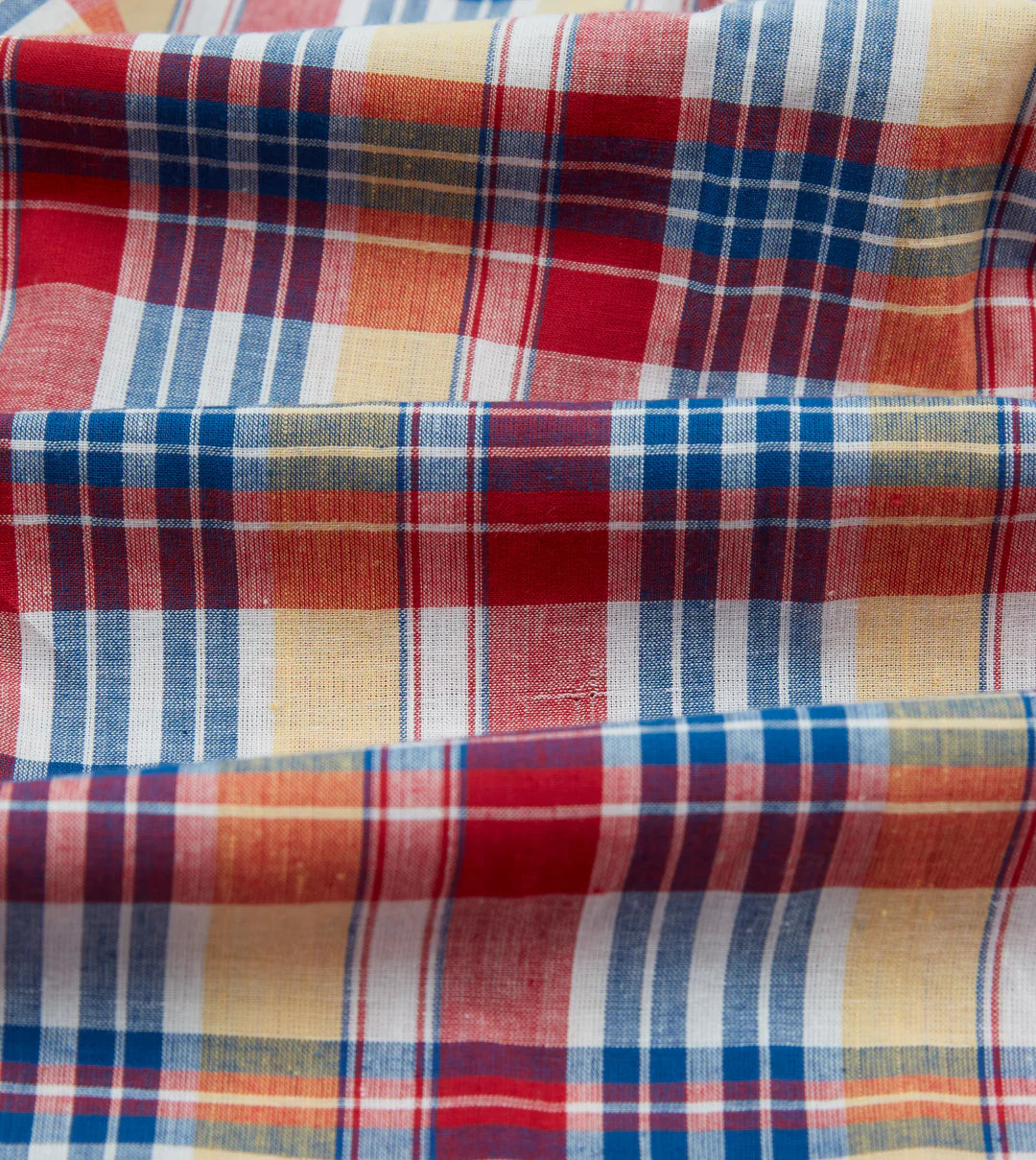 Madras is a certified summer staple; woven in in Chennai, India (formerly named Madras) from a delicate, short-staple cotton fibre that is home-spun by hand, resulting in the slubby unique texture.