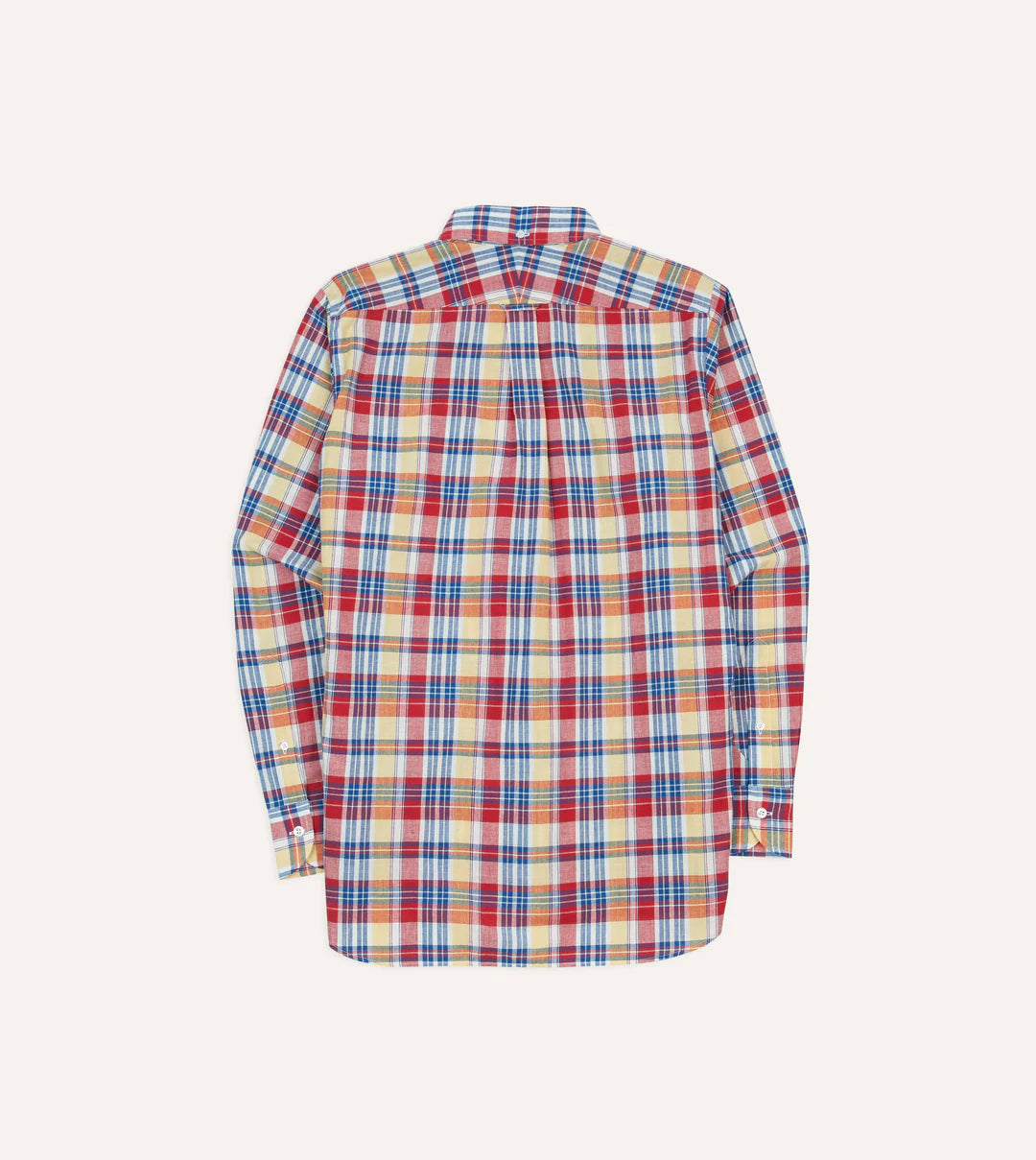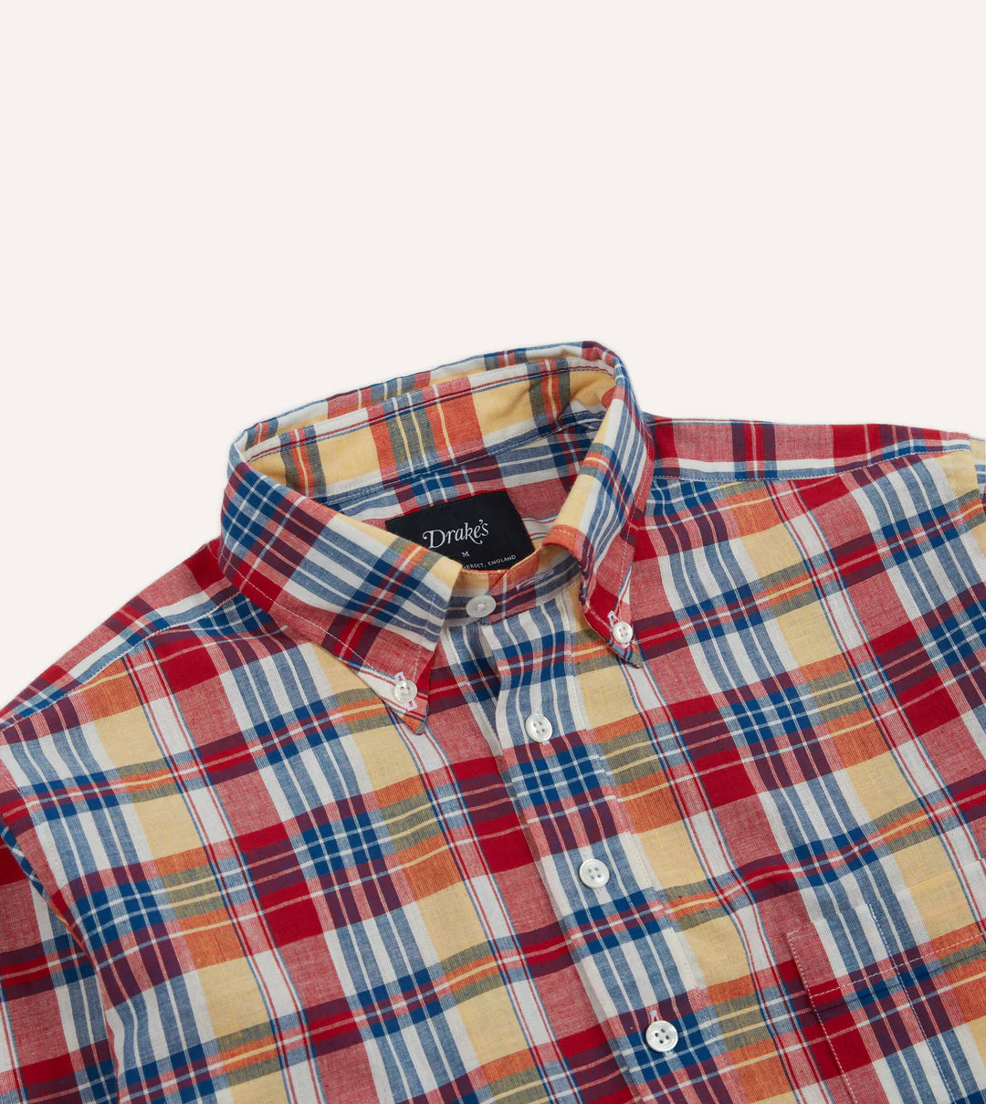 Drake's Madras Check Cotton Button-Down Popover Shirt - Red and Yellow