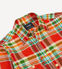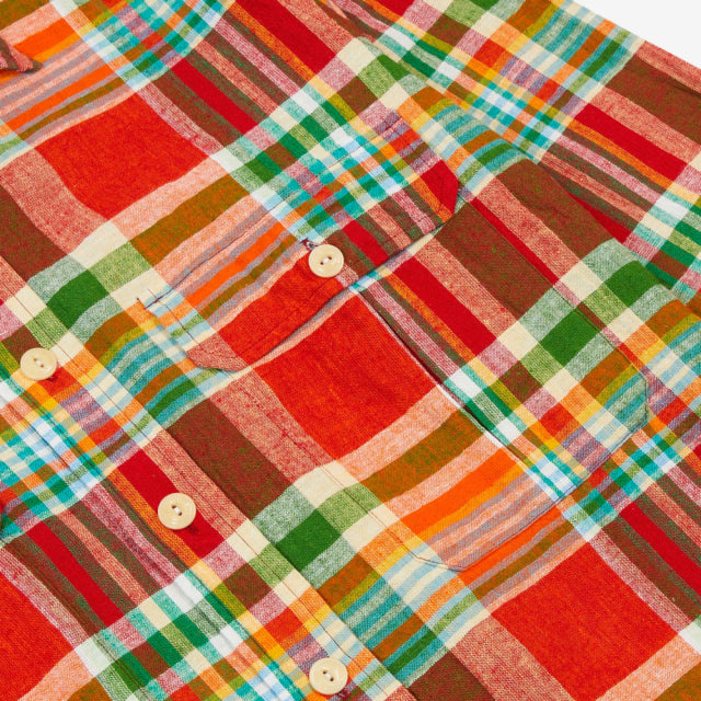 Drake's Madras Check Cotton-Linen Two-Pocket Work Shirt - Red/Green
