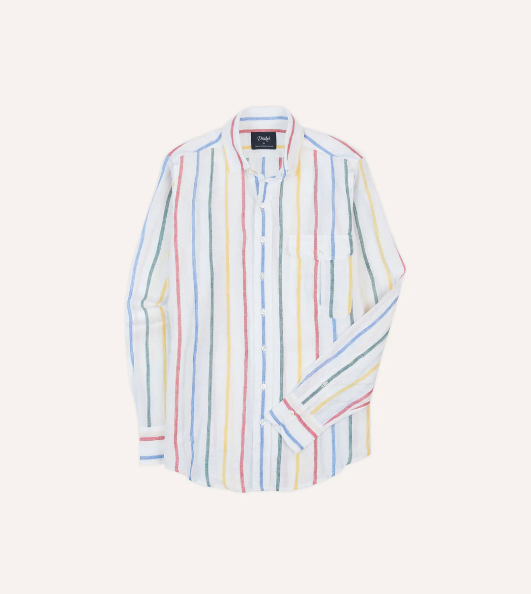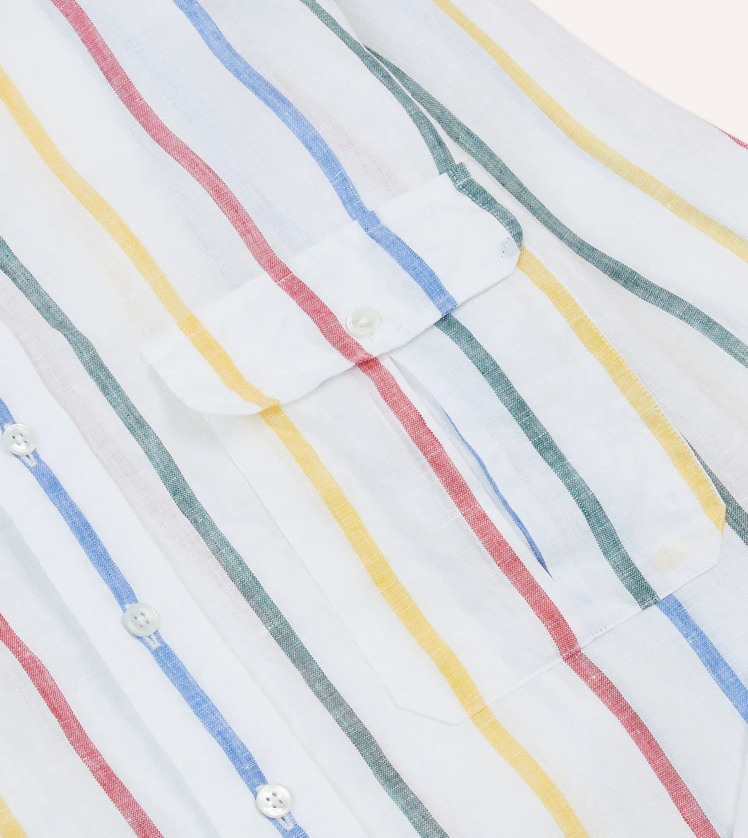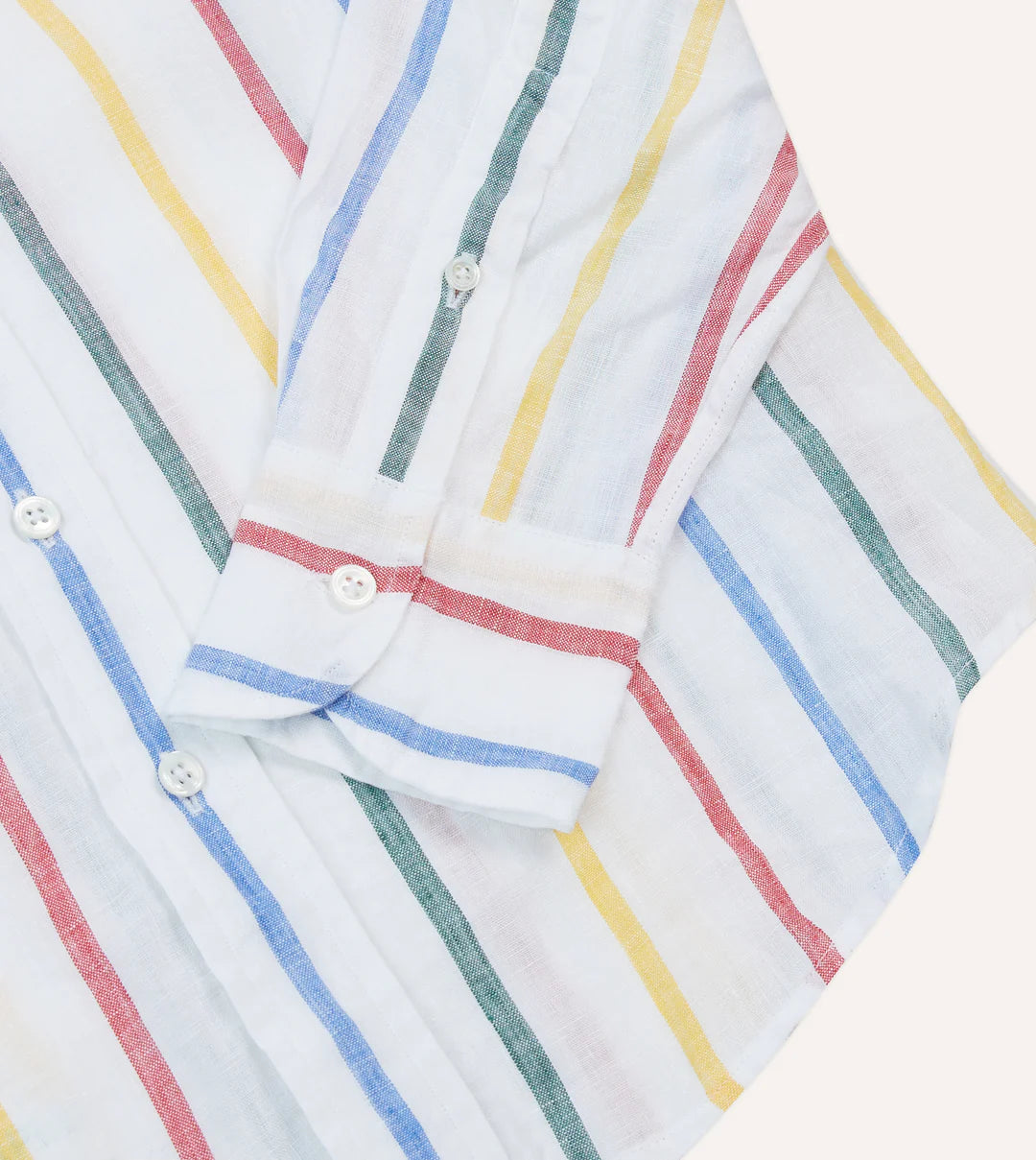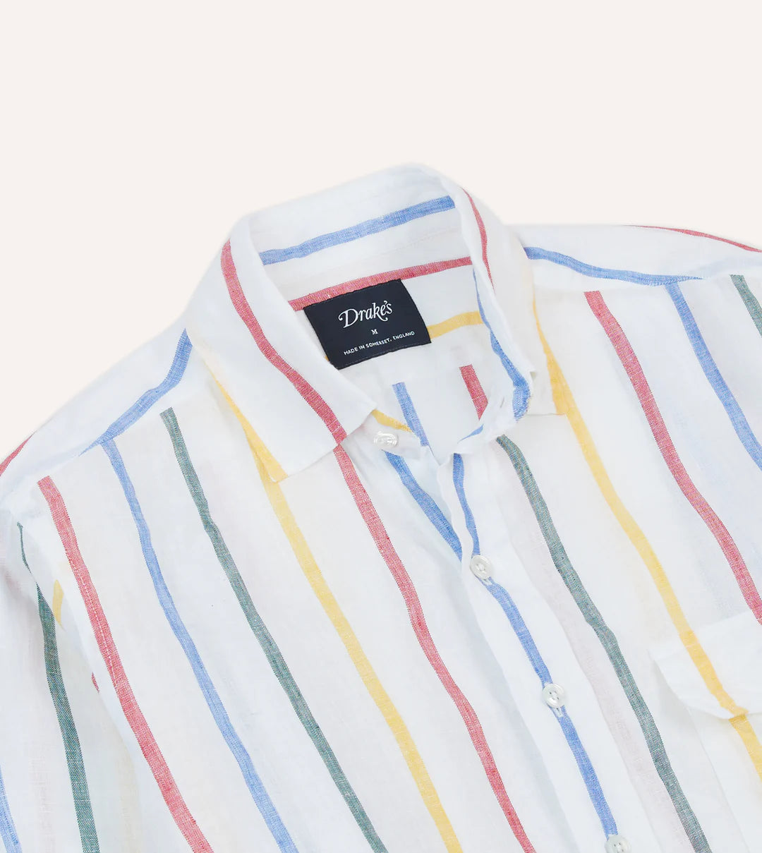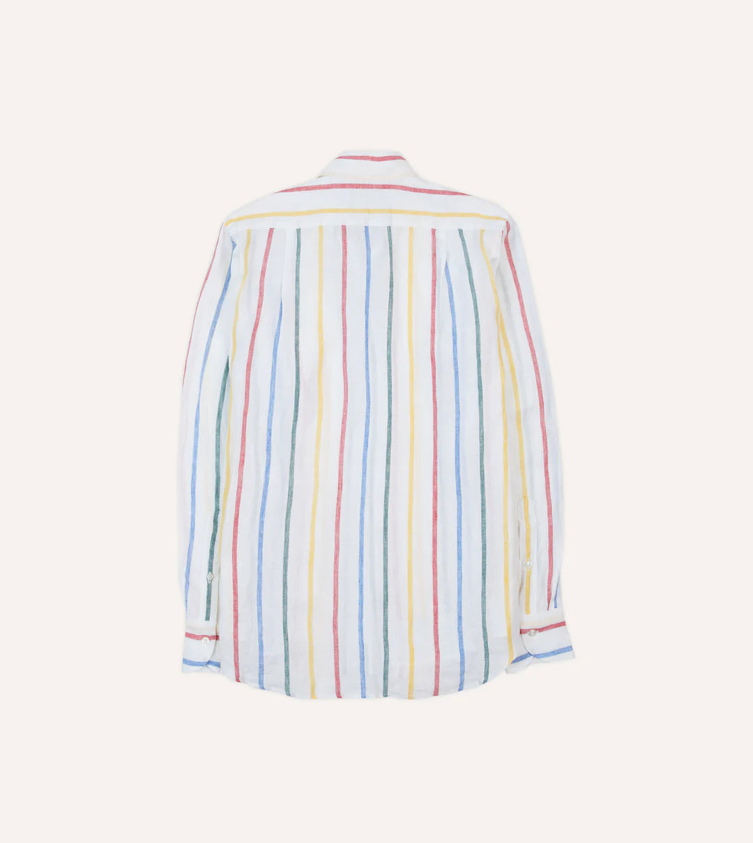 Drake's Primary Stripe Linen Spread Collar Shirt - Multi