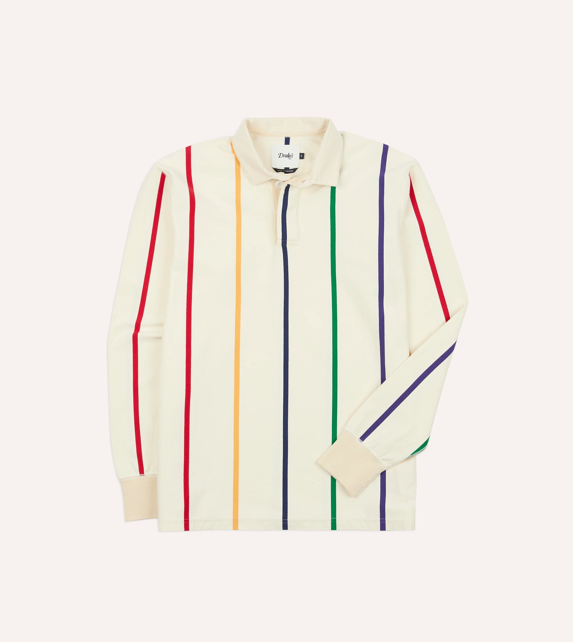 Drake's Primary Vertical Stripe Cotton Rugby Shirt - Multi