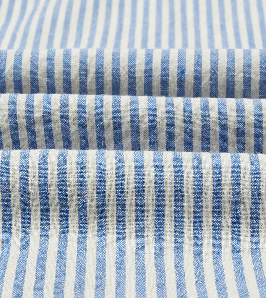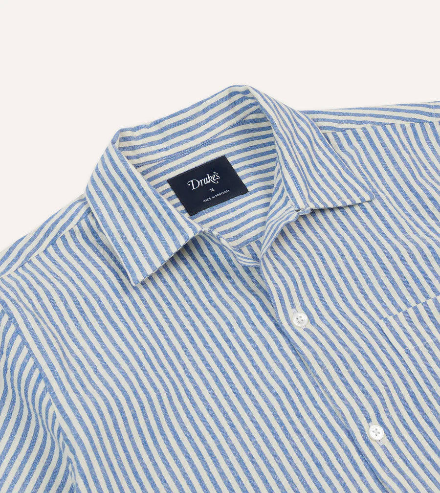 Drake's Stripe Cotton-Linen Camp Collar Short Sleeve Shirt - Blue