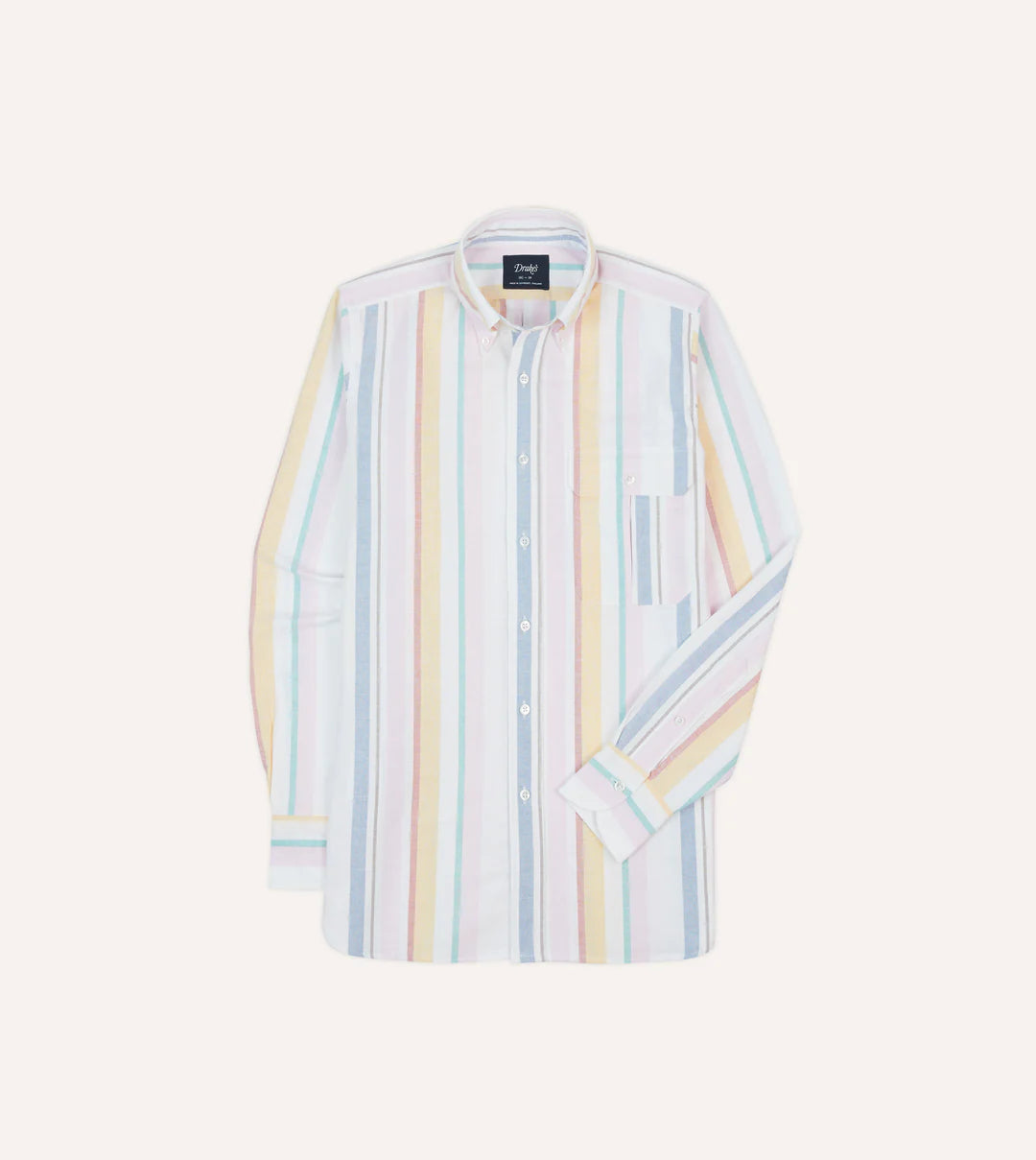 Drake's Stripe Cotton Oxford Cloth Button-Down Shirt - Yellow, Pink and Blue