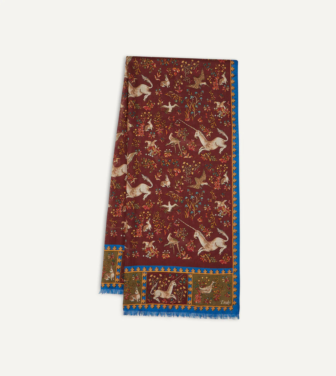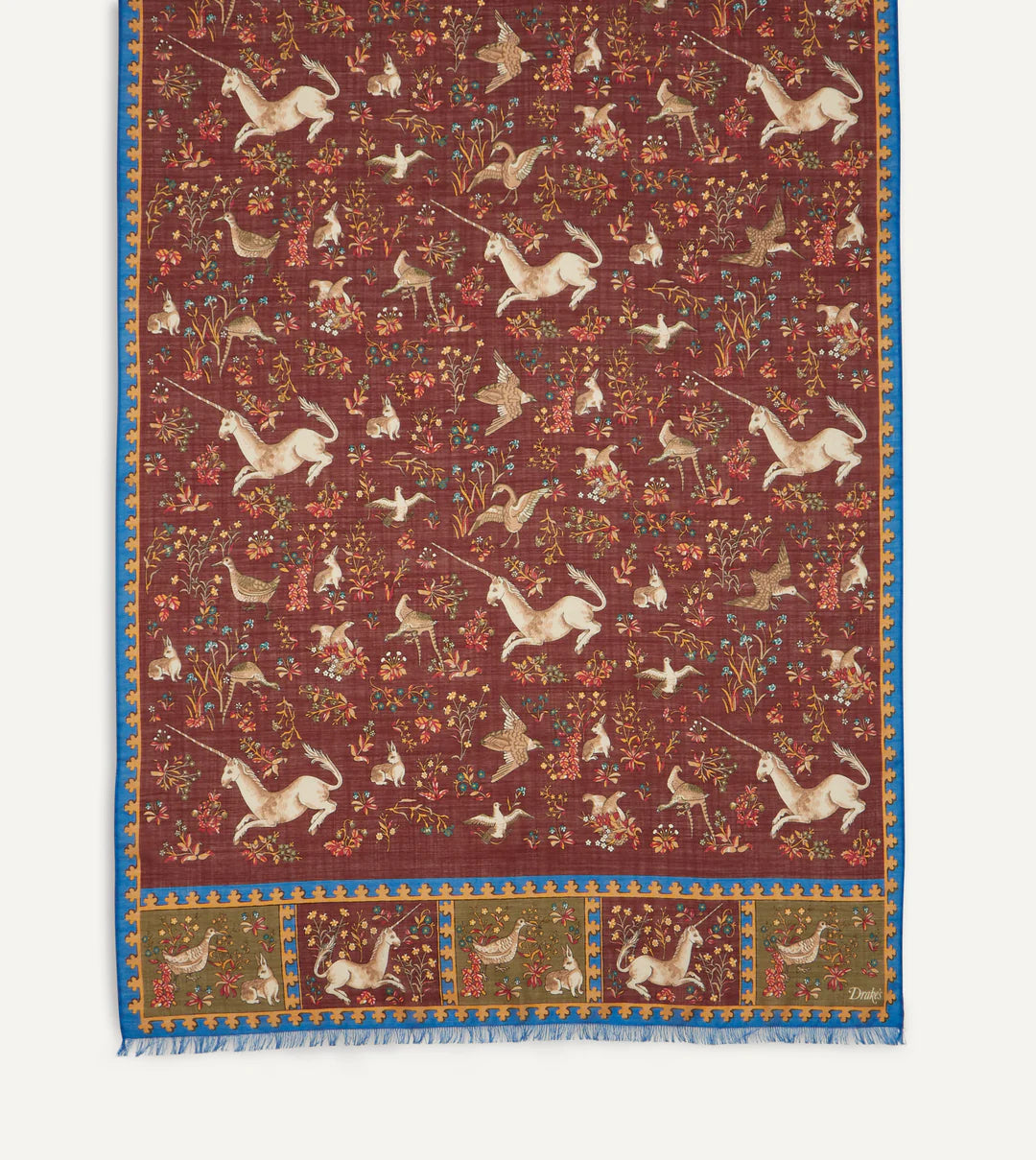 Drake's Unicorn Print Wool/Silk Scarf - Burgundy