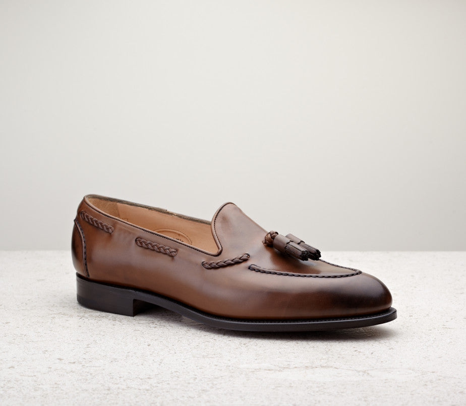 Edward Green's classic tassel loafer with it's signature side plaiting, is a smart and distinctive take on this preppy staple.