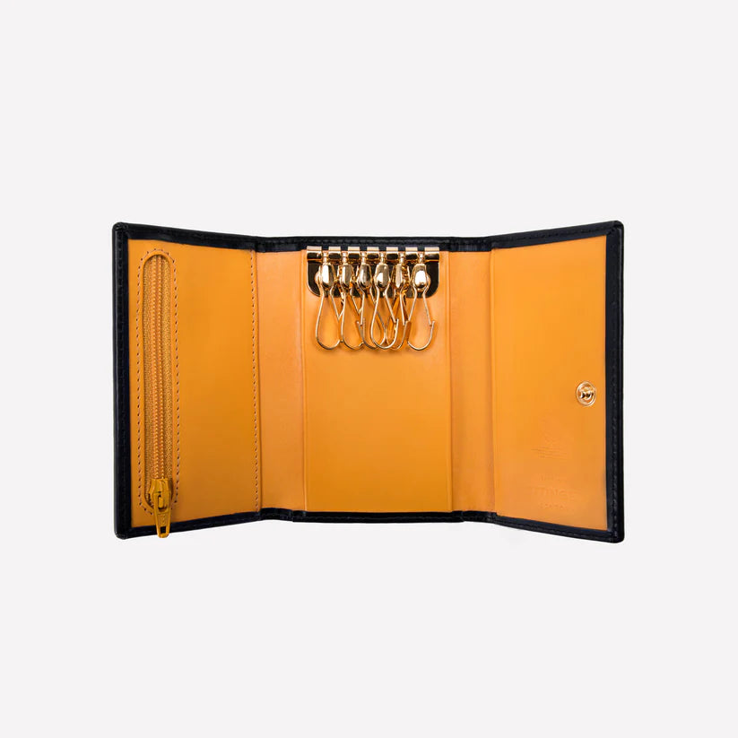 This immaculate leather key case is a secure and reliable solution to never misplacing your keys. The case has six key hooks, as well as two internal and one external card slots. There is also room for loose change, inside the zip compartment of the case.