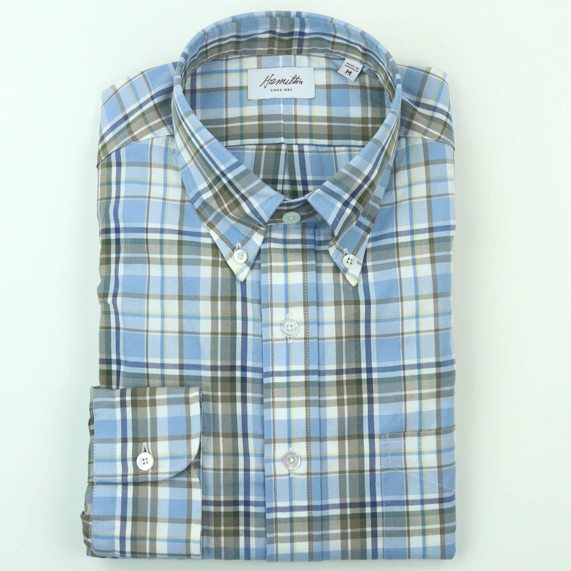 Hamilton Oxford Cloth Plaid Sport Shirt - Sky/Olive/Navy
