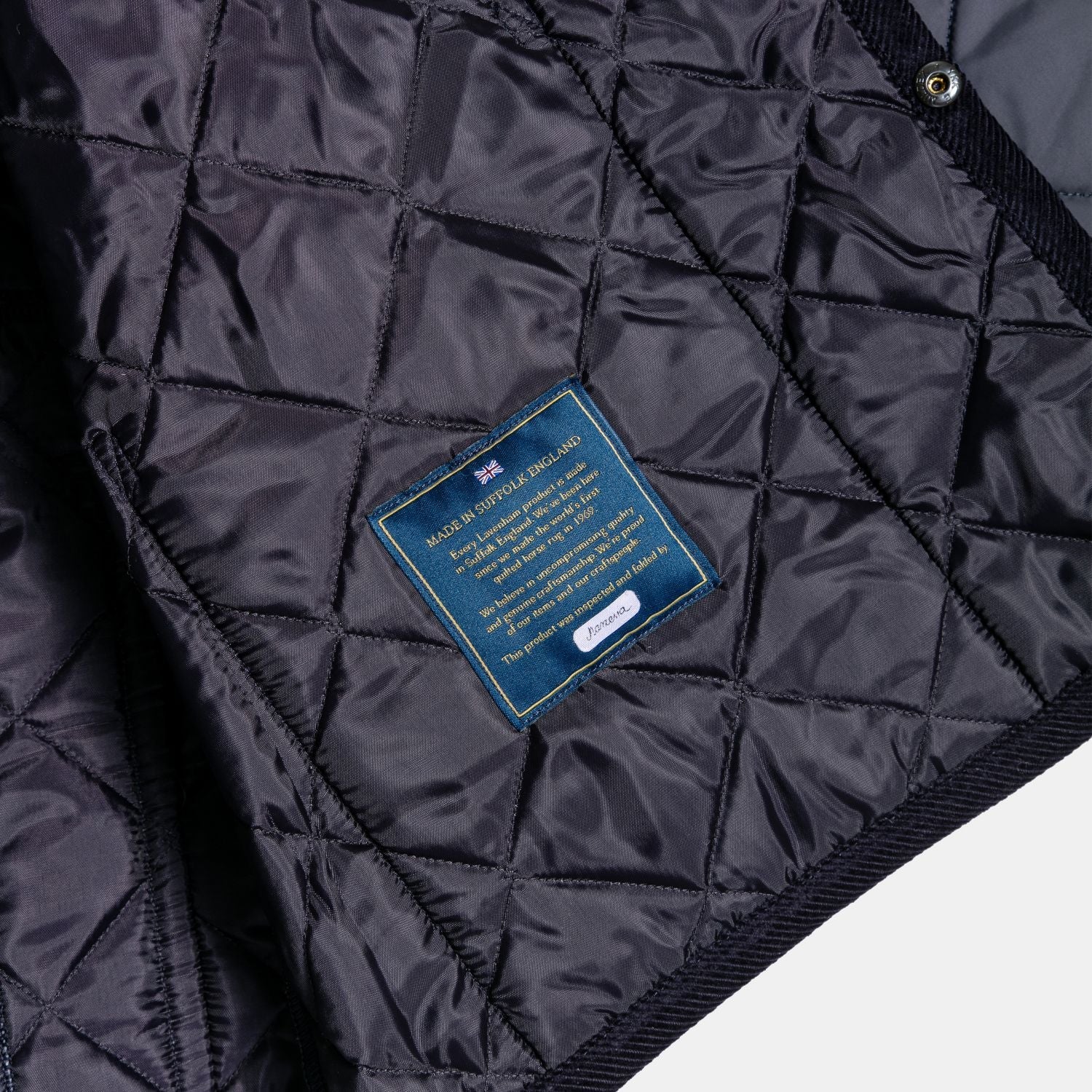 Cut from their signature 2” diamond quilted recycled polyester, affectionally named ‘Lavenster’, the jacket is finished with an organic cotton corduroy binding and collar for enhanced durability.