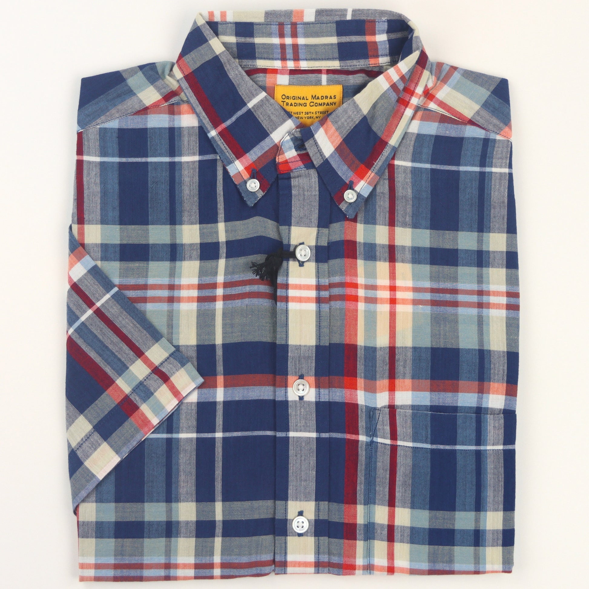 Original Madras Trading Company Short Sleeve Madras Button Down Shirt - Blue/Red