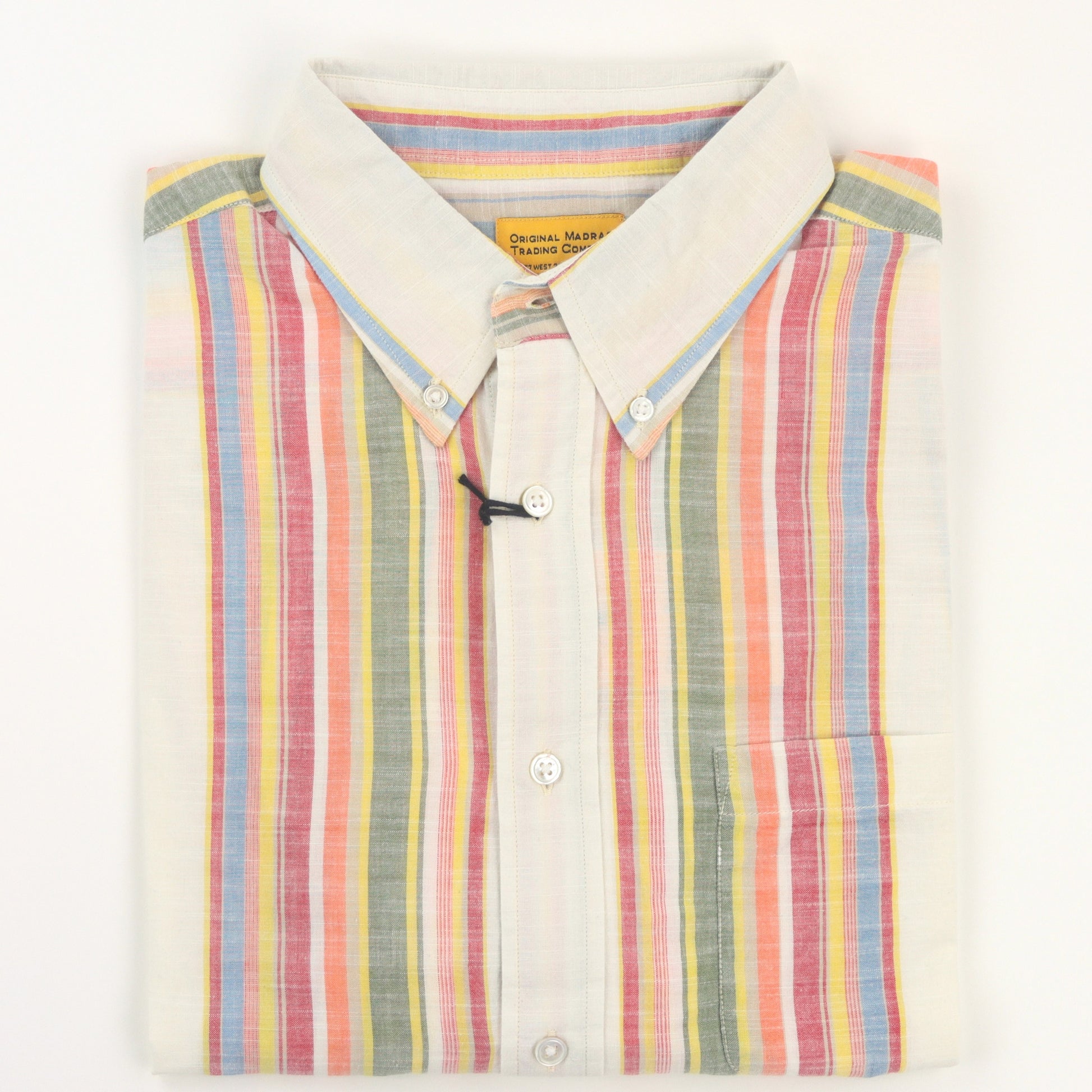 Original Madras Trading Company Stripe Madras Button Down Shirt - Multi