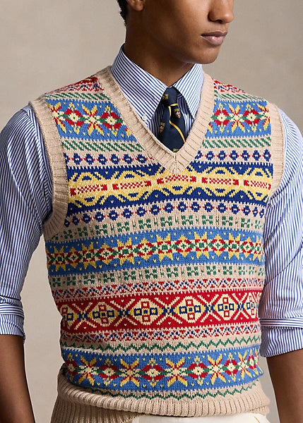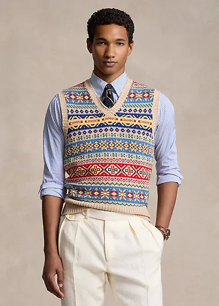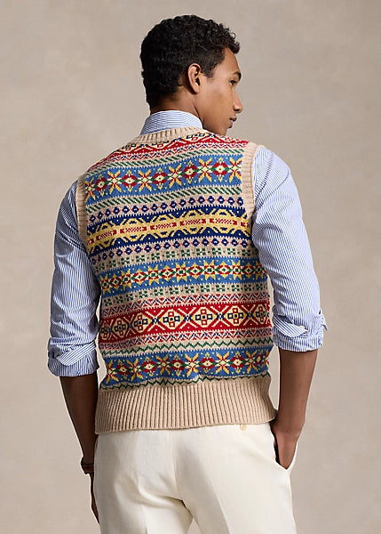 Ralph Lauren Fair Isle Cotton/Cashmere Vest - Tan Combo
