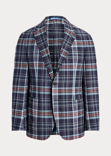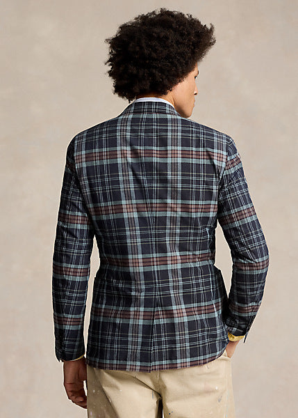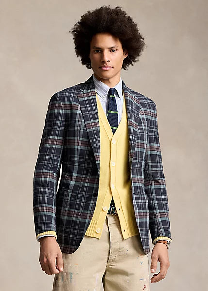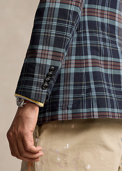Ralph's Polo Soft jacket puts a modern spin on classic preppy style with a natural shoulder, slightly structured chest, and partial lining. This version unites a bold patchwork design with plaid cotton cloth that’s dyed with indigo.