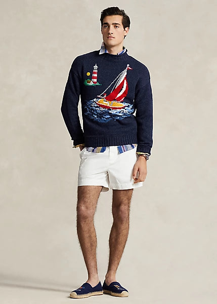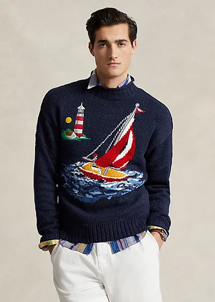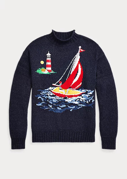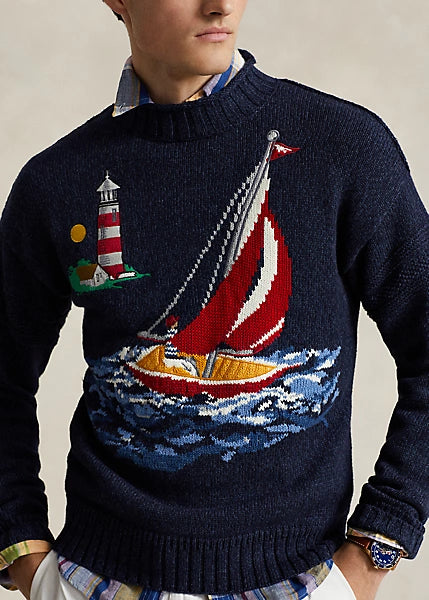 Ralph Lauren Sailboat-Intarsia Cotton Sweater - Navy Combo