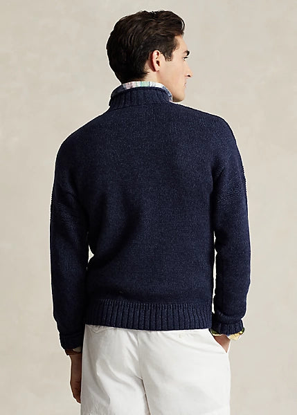 - Rib-knit hem. “RL” hand-embroidered at the left hem.