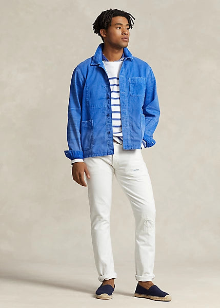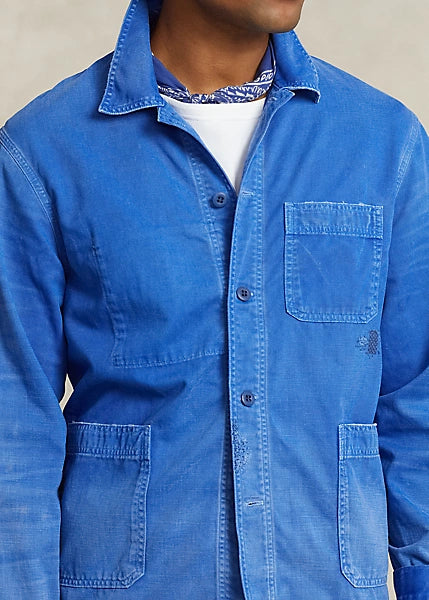 This lightweight cotton jacket is inspired by French workwear from the early 20th century and hand-distressed for an authentic vintage look.