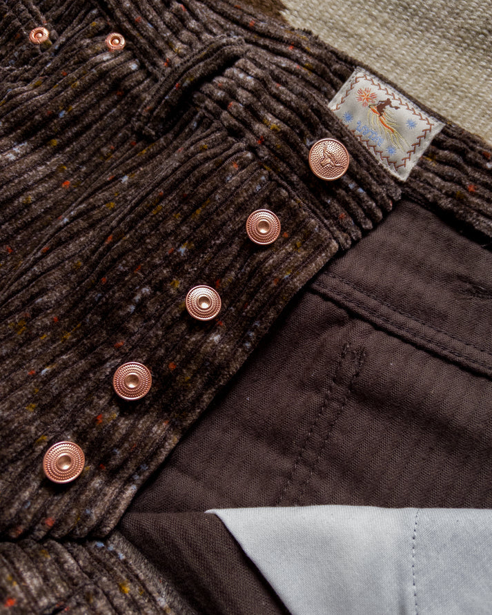 An exclusive fabric to Wythe, the donegal cords came about when we were looking for a corduroy to compliment our donegal tweed. We approached this historic corduroy mill with some of our inspiration, and we worked together to go through their archive to come up with the answer. Throughout the years, they had come up with their own process to achieve a donegal effect in their signature super-soft corduroy. This effect is unique to this mill and there are many steps involved in the process to create this beautiful fabric.