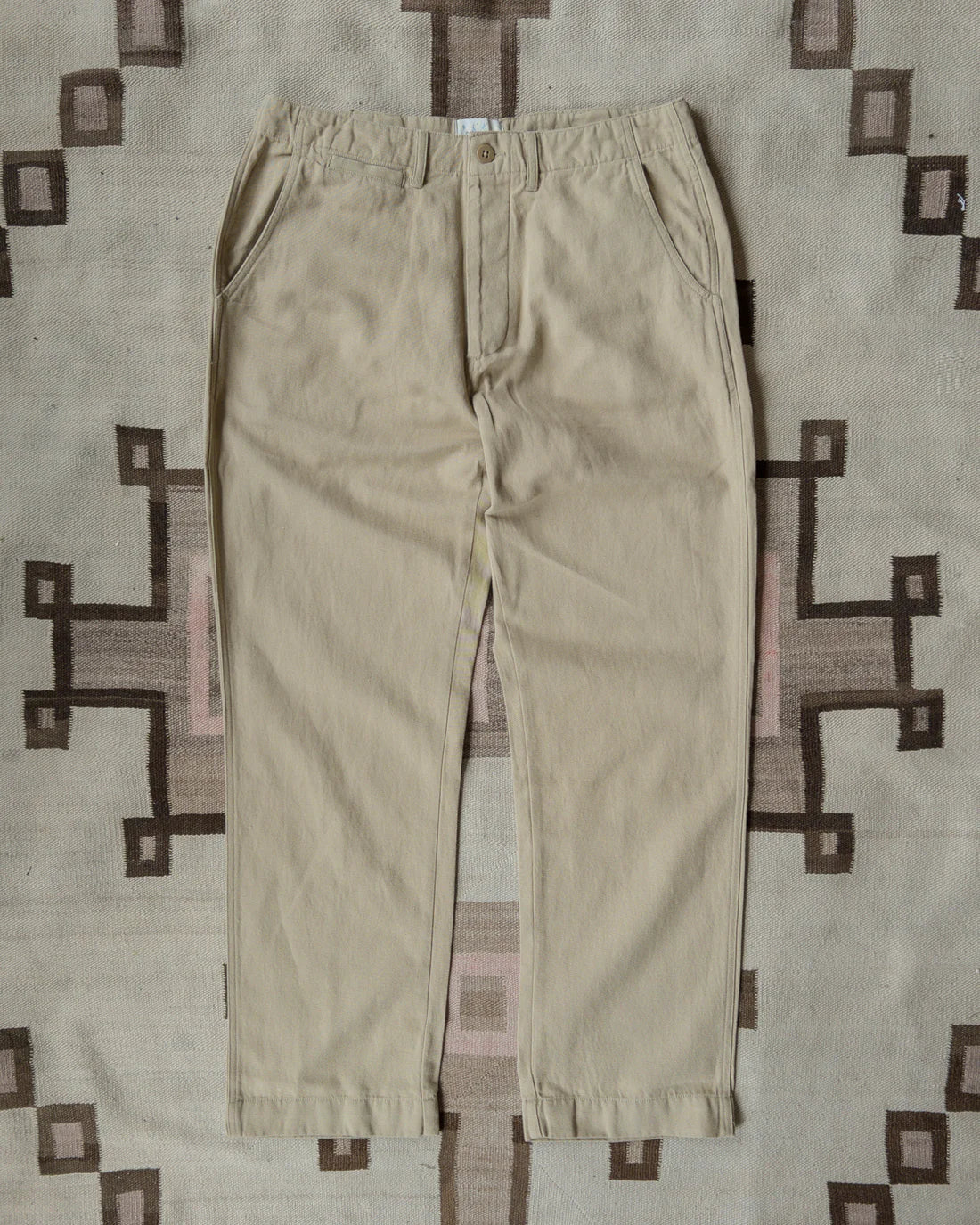 Based on U.S. Military Chinos brought back by G.I's from the war, the very first "chino pant" then evolved into the ever present khaki slacks that have become an American staple. The Wythe Chino is made from a custom and exclusive slub-twill fabric made from unbleached and undyed cotton yarns. The fit retains the charm and fullness of those original pants that look great next to the barbecue or walking down the street. Let em get dirty, let em get wrinkled, and most importantly live in them!