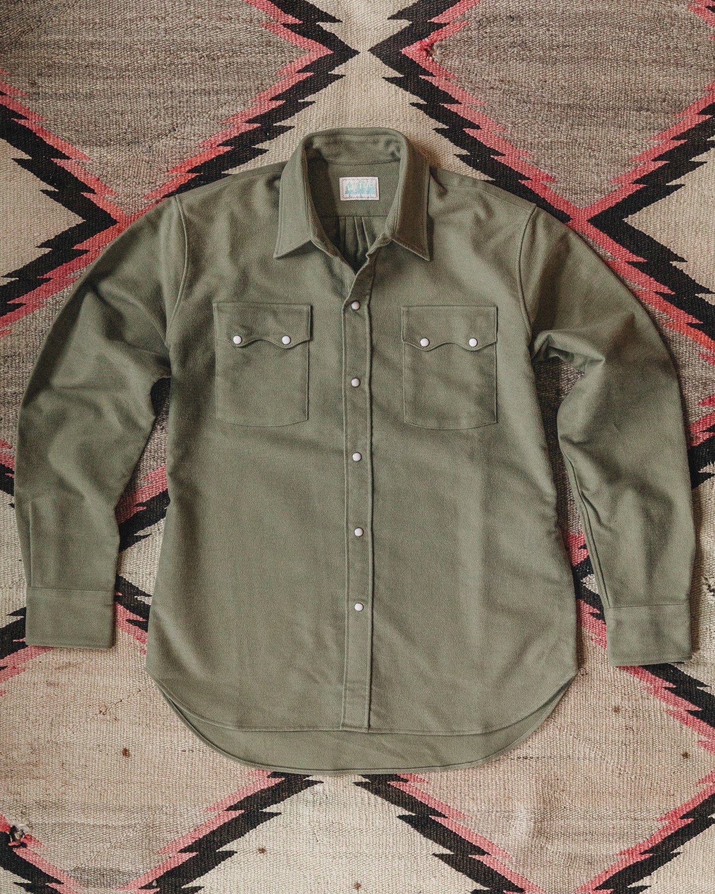 Inspired by classic chamois shirts with a slight western edge. These shirts are made of super soft cotton moleskin that feels like a well-worn vintage shirt straight out of the package. The cream pearl snaps are recreated from old enamel pearl snaps from the 50s that have yellowed with age.